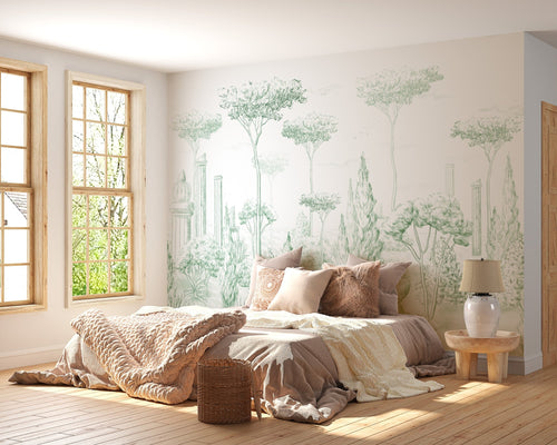 Roman style wallpaper pine forest green