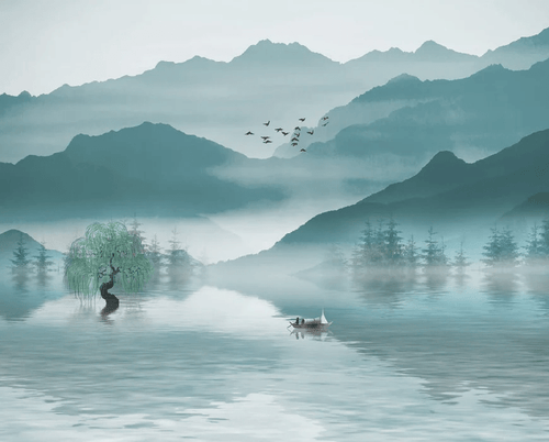 Papier peint entre montagne et lac