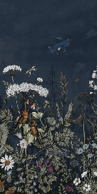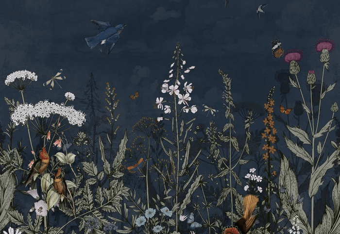 Midnight blue floral panoramic wallpaper