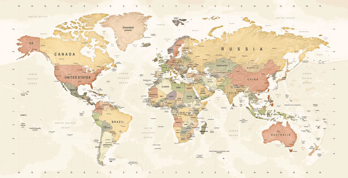 Panoramic wallpaper world map exploration L130cm x H80cm