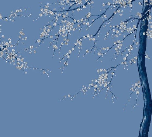 Panoramic wallpaper with blue Sakura flowers