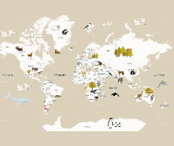 Beige French children's world map wallpaper