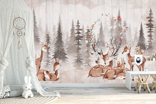 Children's bedroom wallpaper with cute deer