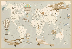 Children's wallpaper map of the world aviator