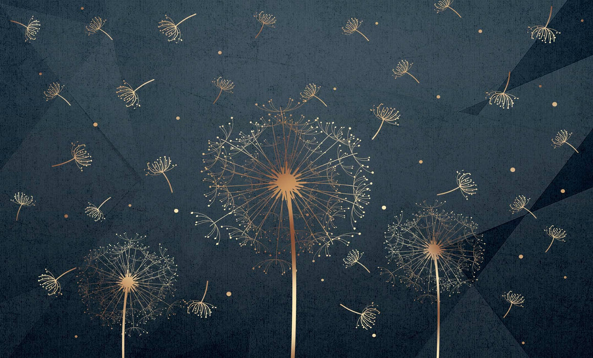Immerse yourself in a deep blue setting, with our deep dandelion & blue wallpaper, which opens you towards other horizon. A wallpaper with minimalist patterns with golden dandelions. It will impress your guests with its depth, and its elegance. Create a peaceful and bright atmosphere thanks to this wallpaper to your measurements.