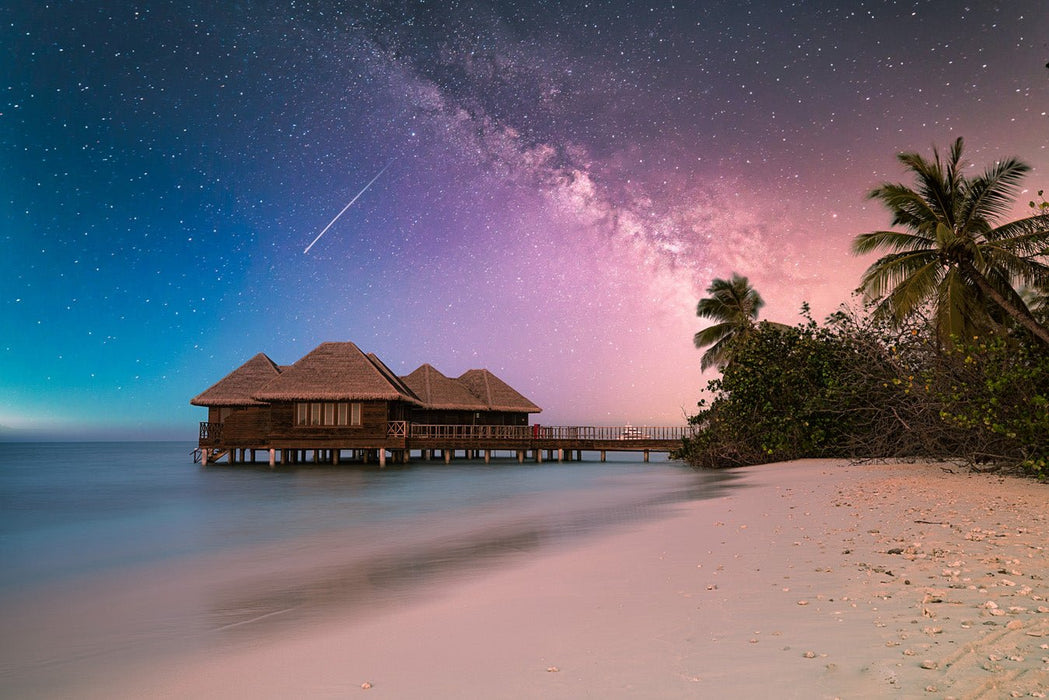 Let yourself be transported to paradise with this enchanting beach photo wallpaper. Both inspiring and exotic, this panoramic wallpaper offers an exceptional, artistic view of an Indian Ocean beach, a stilt, and palm trees.