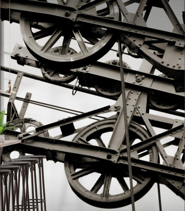 Our industrial spirit wallpaper is the perfect choice for fans of modern, industrial decor. It depicts the mechanism of a ski lift, for a raw, authentic touch.