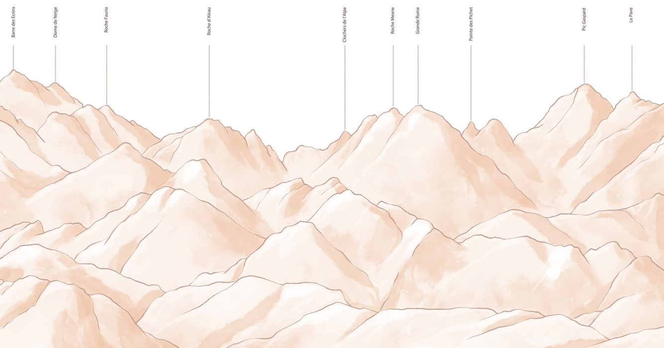 Change your interior design with our massif des Écrins terracotta wallpaper. This green mural depicts the Écrins massif, formerly known as the Pelvoux massif. The terracotta color of this wallpaper lends authenticity to your decor. The Écrins massif is nestled in the French Alps, offering breathtaking scenery and captivating natural wonders. Sublimate your walls with the vertiginous mountains and glaciers of this must-see French massif in terracotta version. This charismatic wallpaper will melt your heart.
