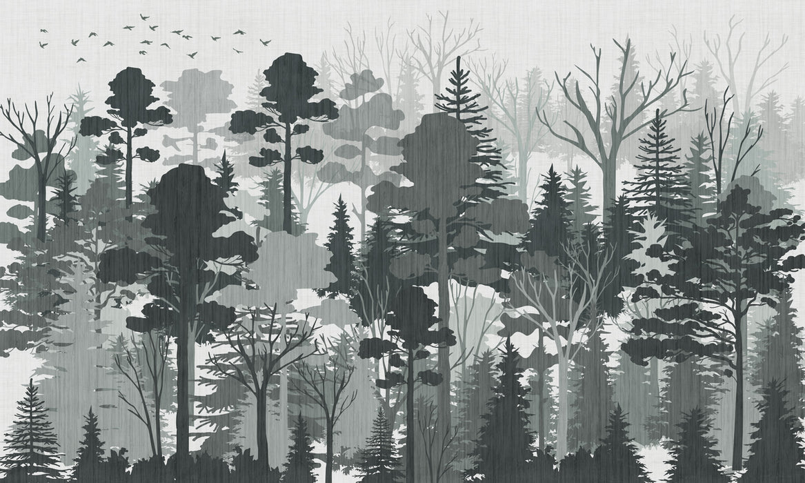 This nature forest green panoramic non-woven wallpaper is ideal for creating an original wall decor. With its trendy black, green and white shades, this wallpaper is like a mural, a unique creation to dress up your walls. A wall fresco for an elegant, refined style. Easily create a unique interior with our custom panoramic wallpaper. A screened effect is applied to this visual to give it an authentic look. A chic touch of nature in your home!