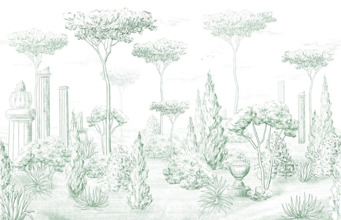 Roman style wallpaper pine forest green