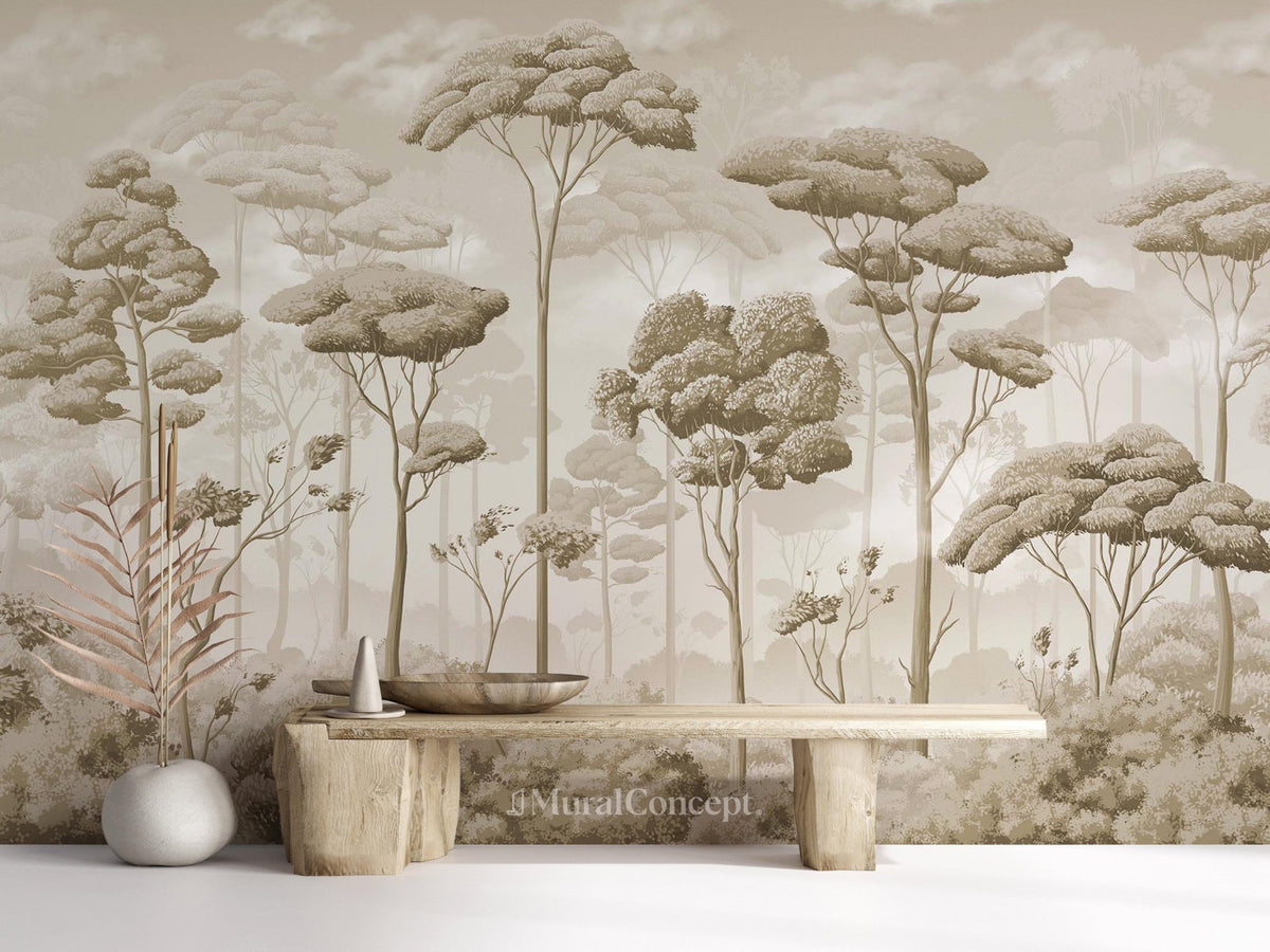 Plunge into the heart of the forest with our voluptuous sepia pinewood panoramic wallpaper. This made-to-measure wall tapestry will sublimate your interior and make it unique. With notes of elegance and artistic effect, this sepia wallpaper has incredible charm. This panoramic wallpaper can be used anywhere in the home. It's ideal for professional premises and can be printed on ERP wallpaper, which is M1 fire-retardant. Buy now your made-to-measure, French and eco-responsible panoramic wallpaper. This trendy wallpaper is exclusive to MuralConcept.
