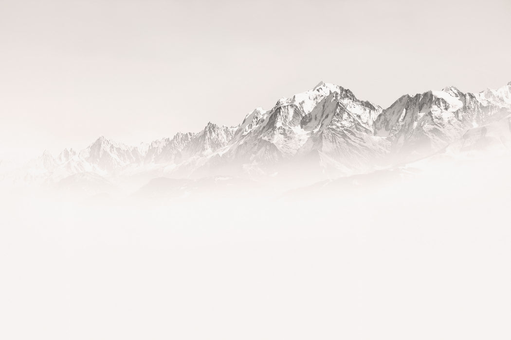 This Mont Blanc misty morning wallpaper is the perfect backdrop for your interior. Both inspiring and exotic, this panoramic wallpaper offers an exceptional, artistic view of the Alps' most famous mountains.