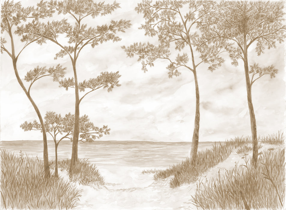 Treat your walls to a prestigious and timeless mural. Order your sepia panoramic wallpaper inspired by the Basque Coast and the Landes region now, a unique creation by artist Flora Lacour Filliol.