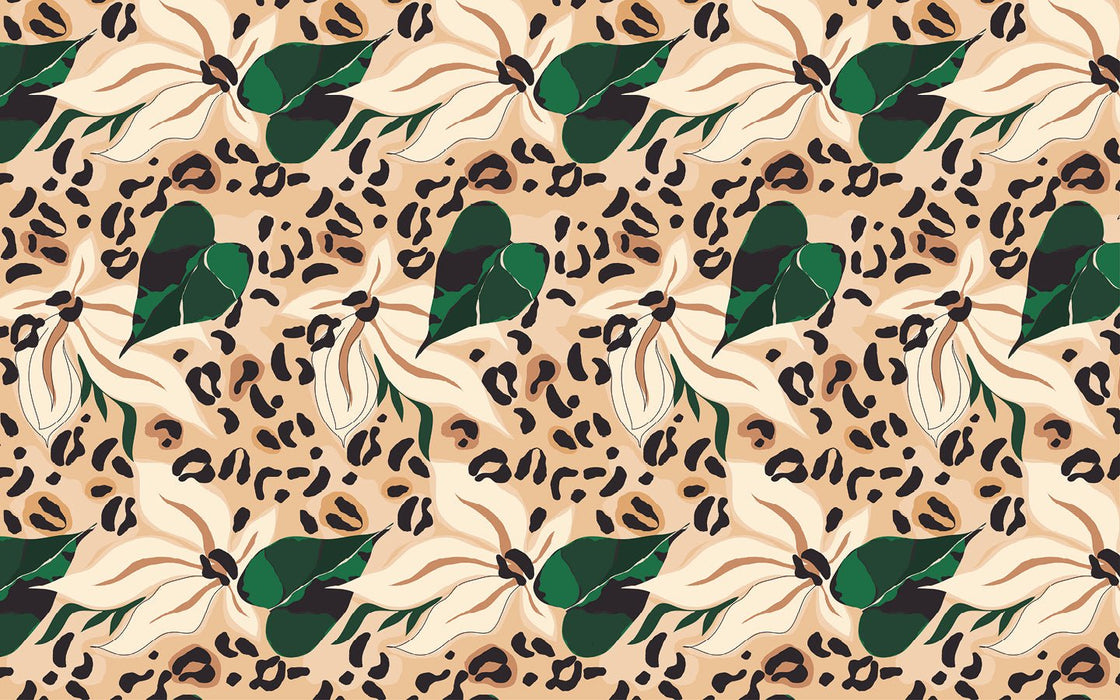 Sublimate your walls with feline flower abstract wallpaper. This panoramic wallpaper is a breathtaking wall decoration, with a blend of wild attitude and soft shapes. The delicate pattern contrasts with the feline shapes to create a warm, original atmosphere. This panoramic abstract wallpaper features abstract lily flowers, matched with verdant blossoms and a feline motif. A tapestry full of history that will add character to your wall. Decorate your interior with this original MuralConcept mural.