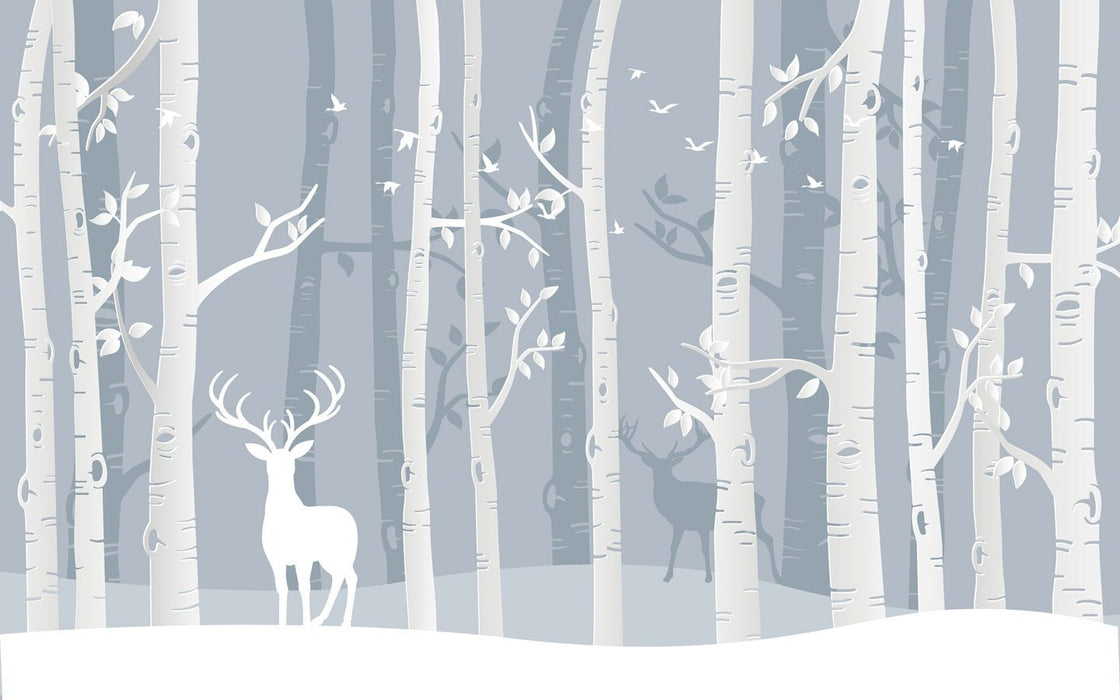 Children's Scandinavian forest wallpaper birch and deer