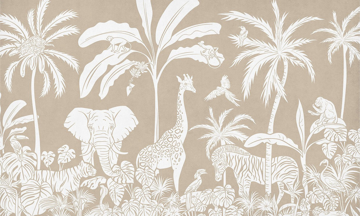 Children's wallpaper safari monochrome beige