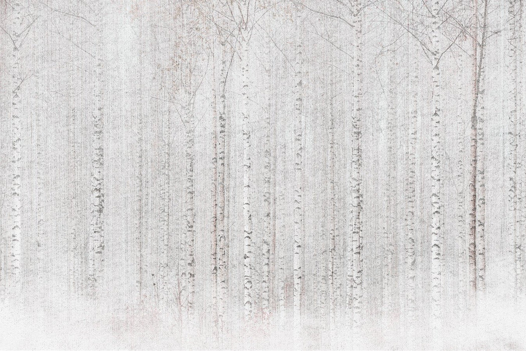 Enveloping birch forest wallpaper
