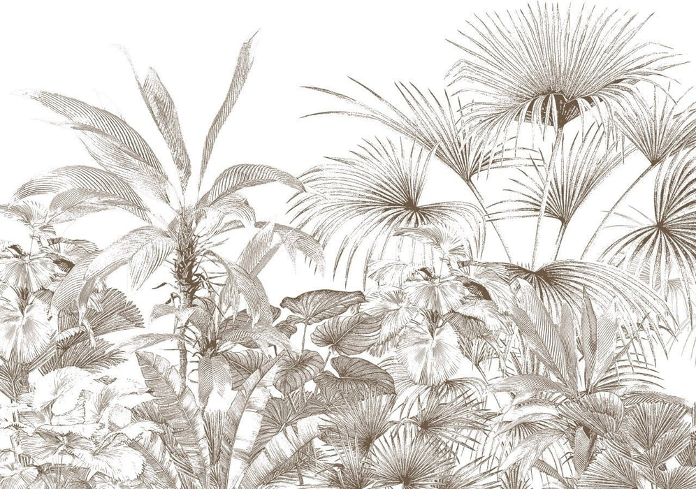 Tropical gravure monochrome wallpaper brings a fresh, tropical touch to your interior design. A jungle note for a soothing, grandiose ambience. Its uncluttered, monochrome jungle motif adds charm and refinement to your interior. Jungle-style panoramic wallpaper is at home in all interiors and professional spaces. This jungle wall fresco goes perfectly with wood, rattan and bamboo decorative objects. As each project is unique, our wallpapers are made to order, and tailored to fit the curves of your wall perfectly. Buy your made-to-measure wallpaper online now.