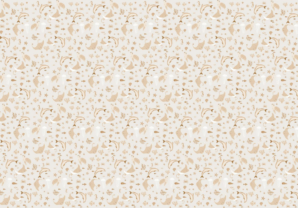 Choose oceania gold wallpaper to decorate your baby's room. A panoramic wallpaper with marine motifs, for baby explorers. You'll love the soft, pastel colors of this custom non-woven wallpaper, which is perfect for a baby's nursery.