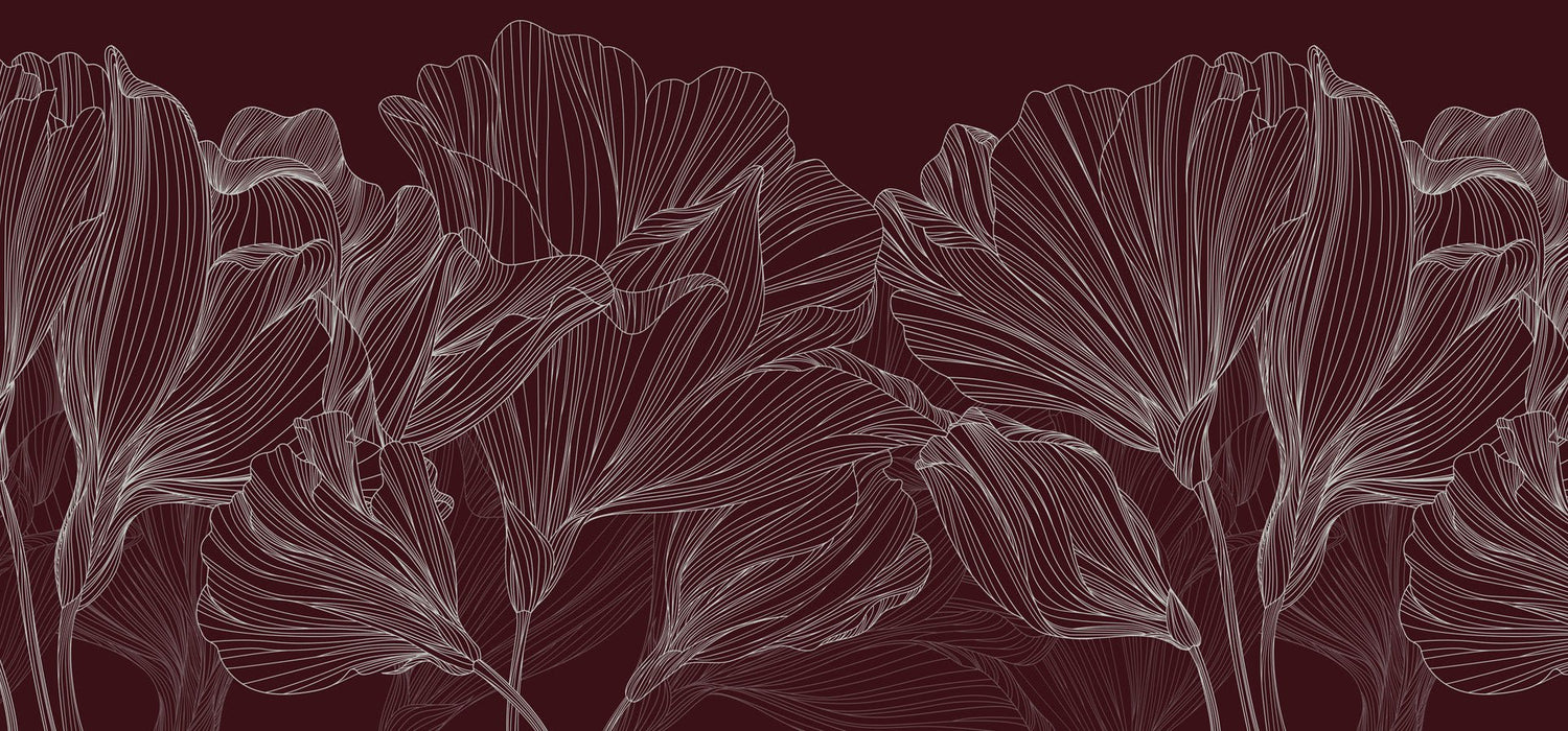 Exhilarating, twirling, artistic, this panoramic wallpaper waltz of burgundy flowers will find its place in a bedroom, an office, a kitchen, a living room...This made-to-measure panoramic wallpaper will add luminosity, character and a sophisticated touch to your decor.