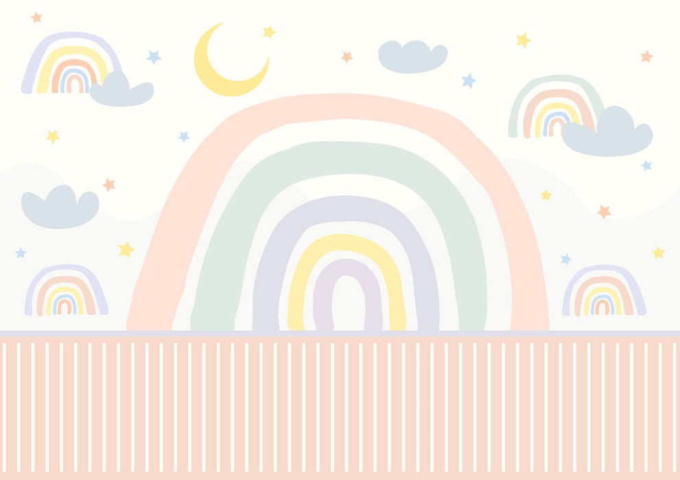 Bring softness and tenderness into your child's bedroom with this pastel-colored rainbow girl's bedroom wallpaper. A pretty rainbow to brighten your child's day. A magical bedroom in color, a dream come true for little princesses. Easily create the imaginary world he's always dreamed of with our made-to-measure XXL tapestry.