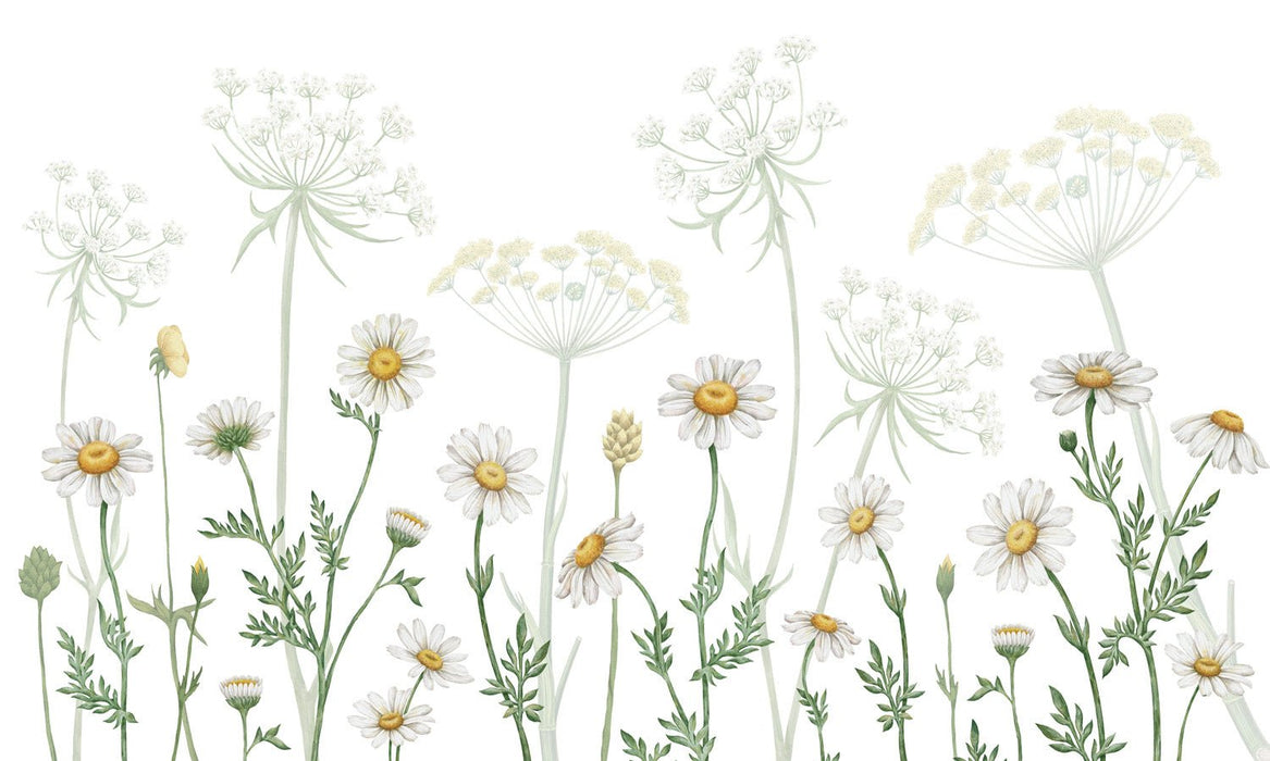The delicately drawn daisies at the bottom of the mural offer a subtle touch of nature that exudes freshness. The soft, detailed aesthetic adds a touch of charm to your interior design, while maintaining a soothing atmosphere.