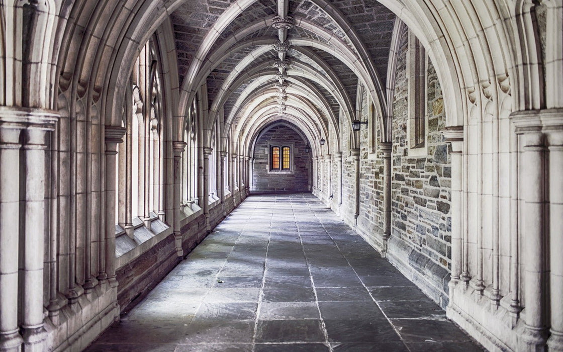 Trompe l'oeil wallpaper Parisian cathedral alcove
