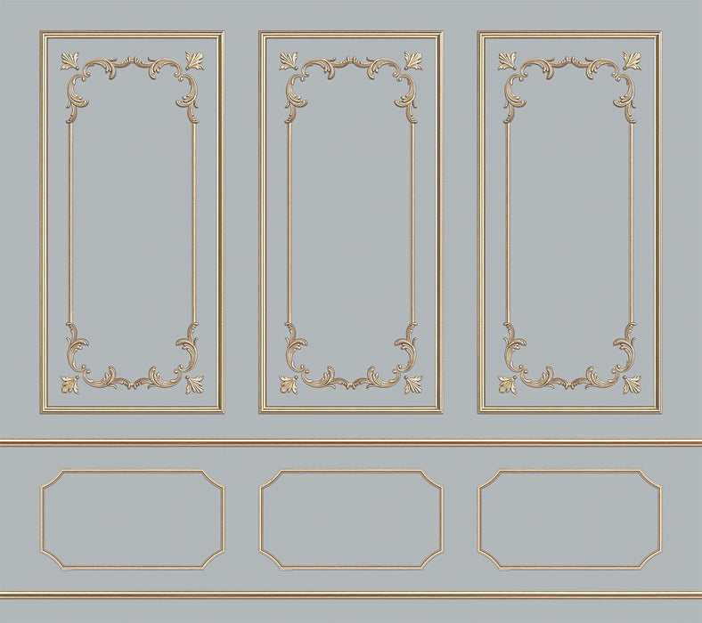Parisien style gold molding wallpaper is a trompe l'oeil that will bring elegance and refinement to your interior. Its grand design adds light and perspective to your room. A panoramic wall decor that will impress your guests. Easily create a unique interior with our custom non-woven wallpaper.