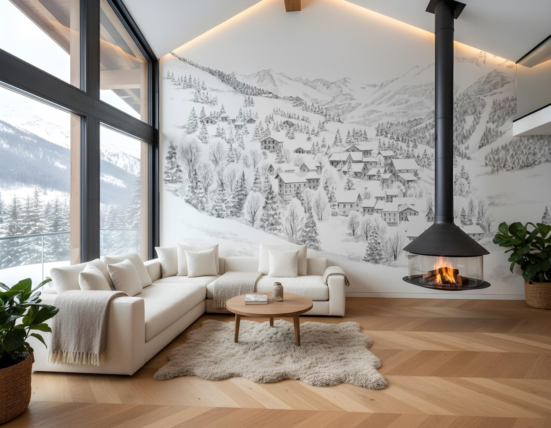 Ce papier peint montagne Méribel est une tapisserie panoramique haut de gamme, conçue pour la décoration d’hôtels de luxe, chalets haut de gamme et espaces professionnels. Inspiré des paysages alpins et des villages savoyards enneigés, il crée une ambiance montagne chic, chaleureuse et élégante.