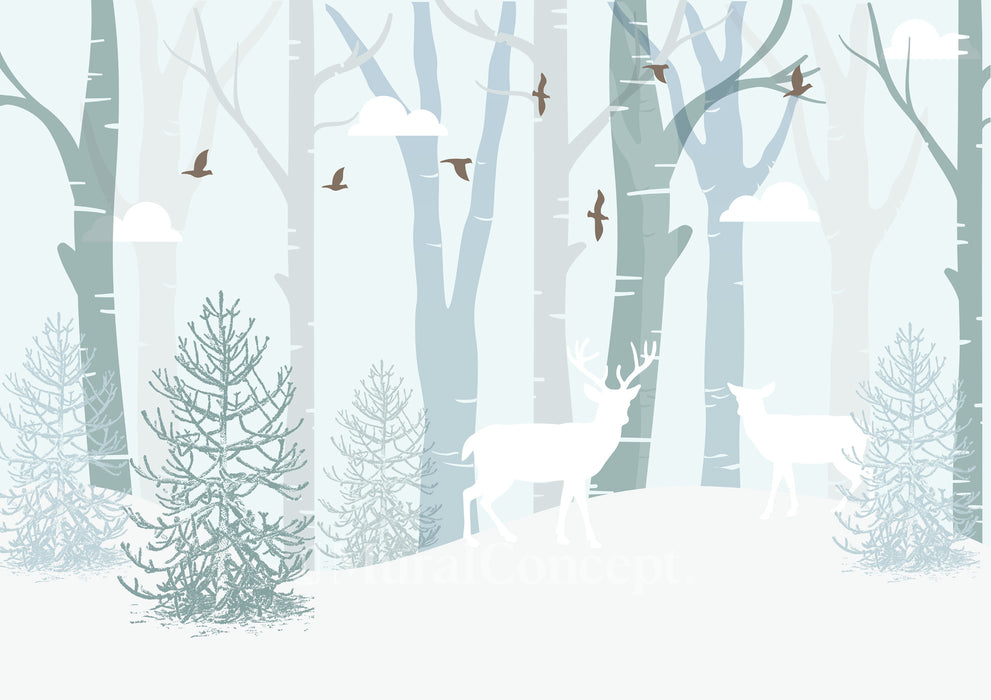 Add a magical touch to your child's bedroom with our "Lapland" wallpaper. This fairytale Scandinavian decor, adorned with a snowy forest, invites you to escape into a soft, comforting sleep.