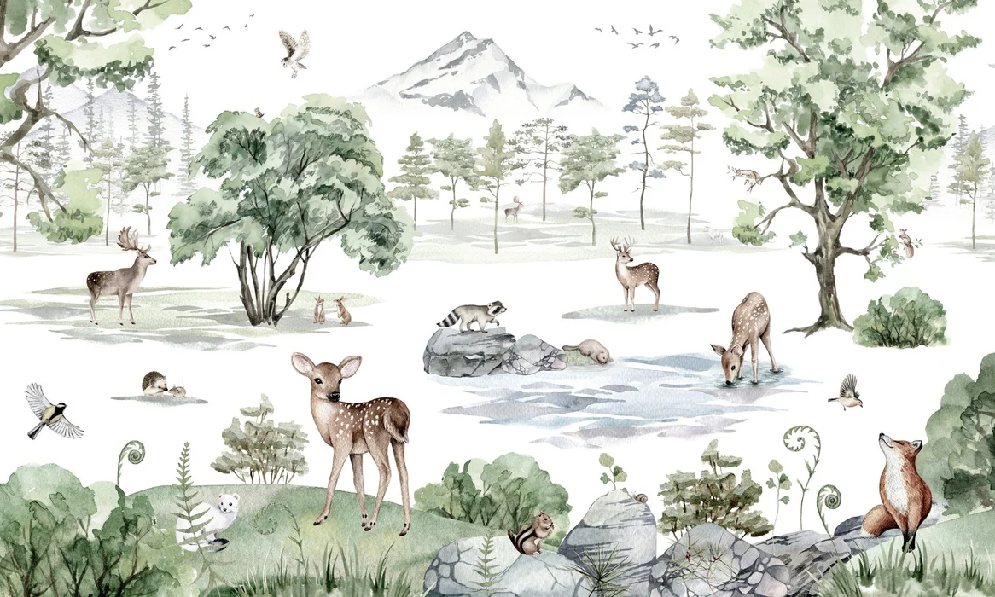 Papier peint animaux prairie enneigée