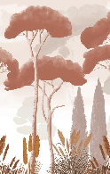 Papier peint cyprès pins et herbes de la pampa terracotta