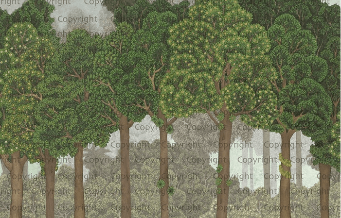 Papier peint grands arbres illustré