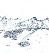 Papier peint montagne Megève – Fresque artistique peinte à la main