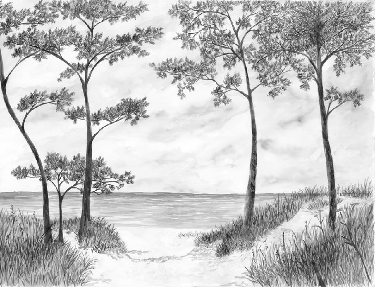Papier peint Pins maritimes et dunes - Noir et blanc