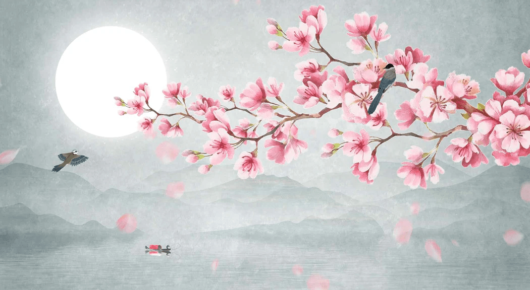 Papier peint tendance floral cerisier poétique